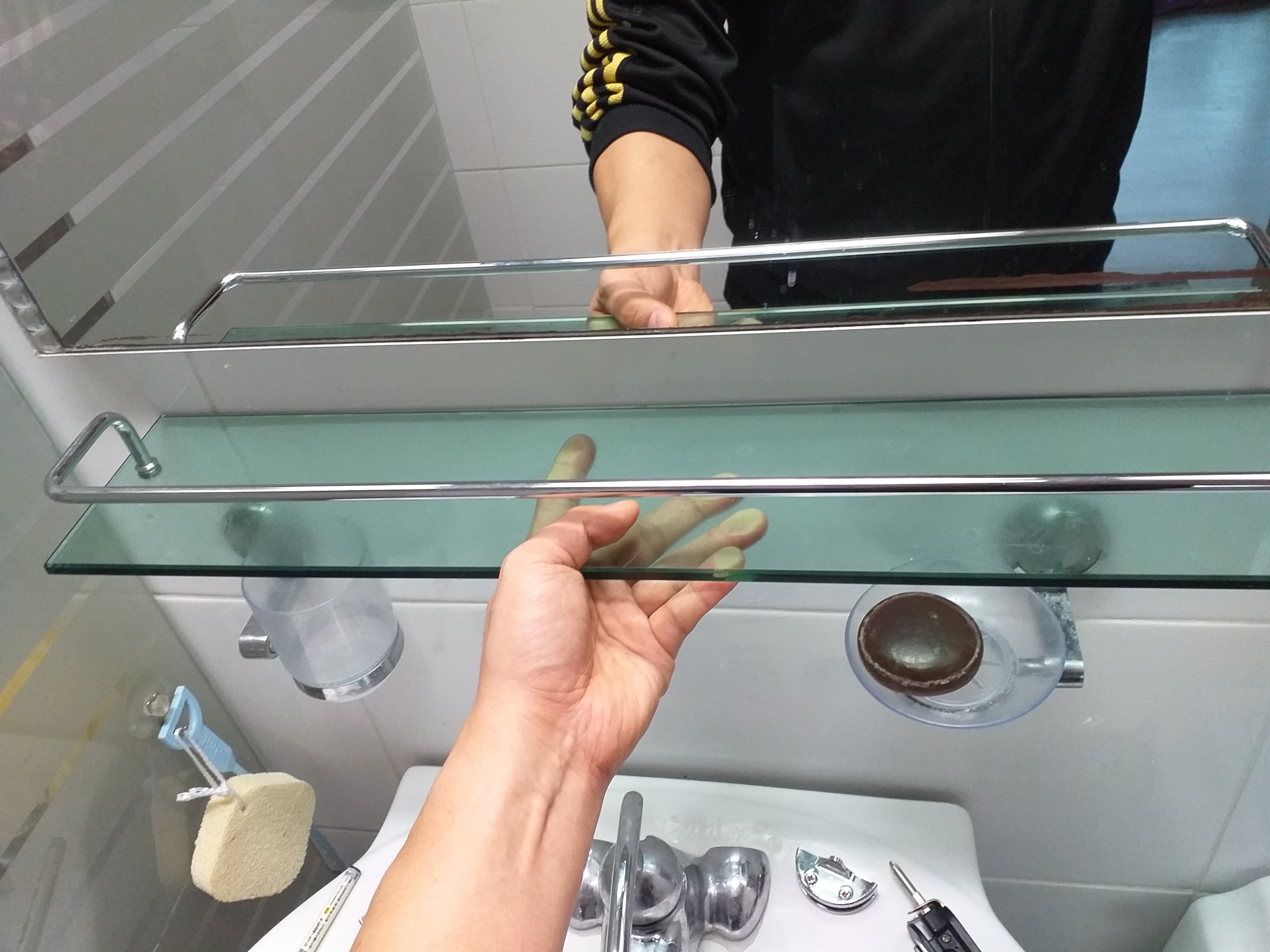 브라켓 고정작업이 끝나면 유리선반을 끼워주고