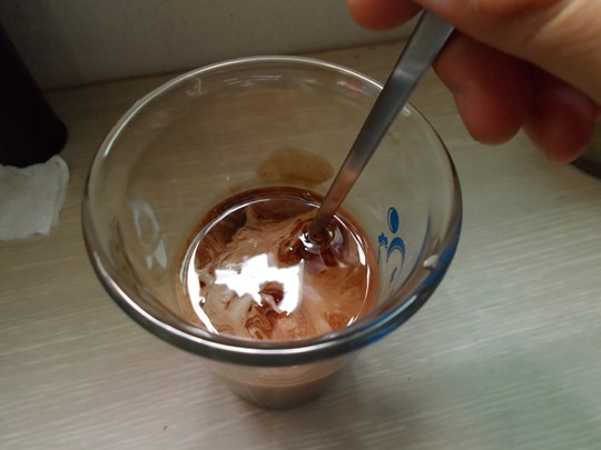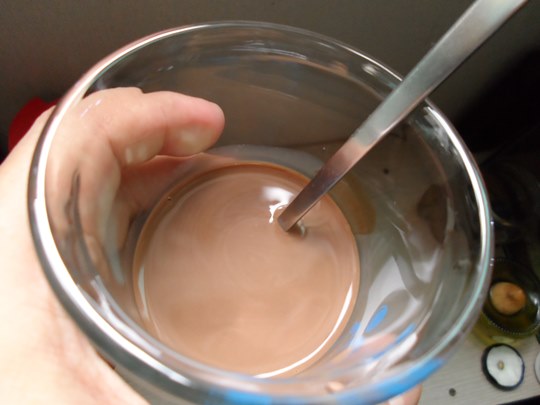 스푼으로 잘 저어 초코소스를 녹여줍니다.