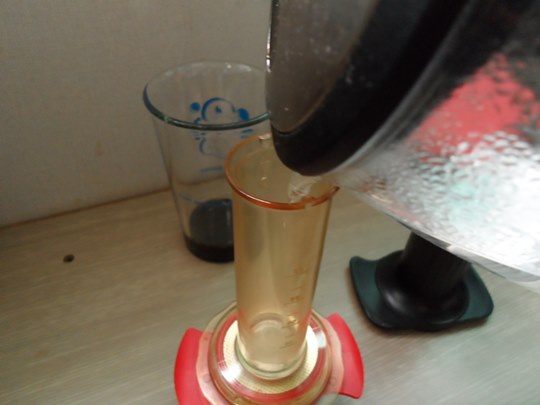잔에 초코소스를 계량해 줍니다.