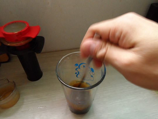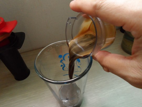 플런저를 올려 조심히 에스프레소를 추출합니다.