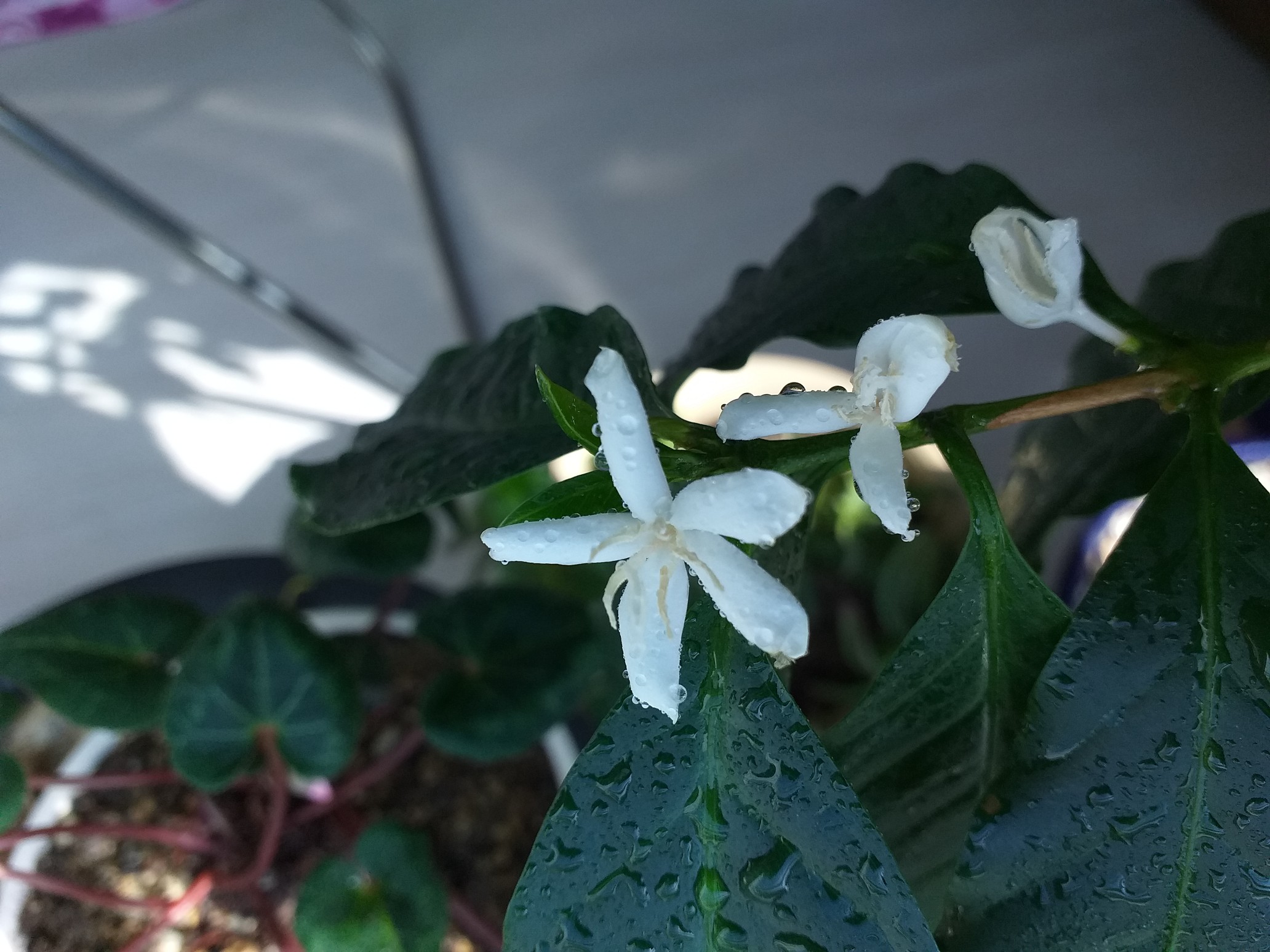 처음 키우는 커피나무에서 커피꽃이 피었고,