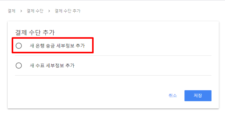 어쨋든 우리나라 사람들은 < 새 은행 송금 세부정보 추가 > 로 들어갑니다.