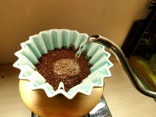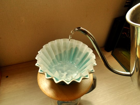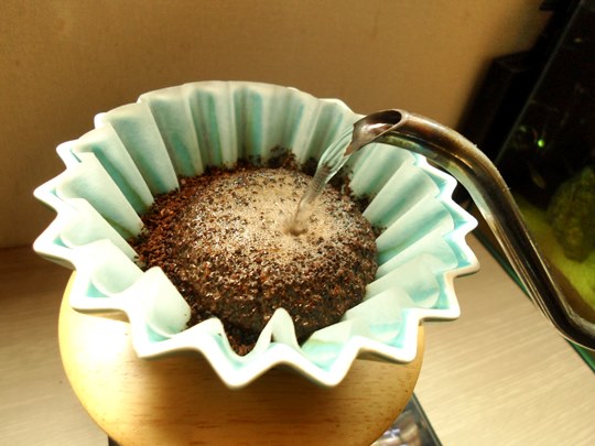 35초가 되면 뜨거운 물 110ml를 추가로 부어줍니다.