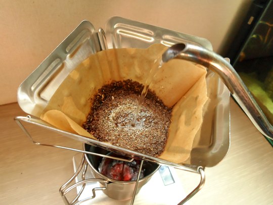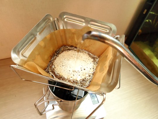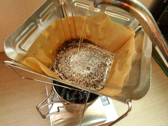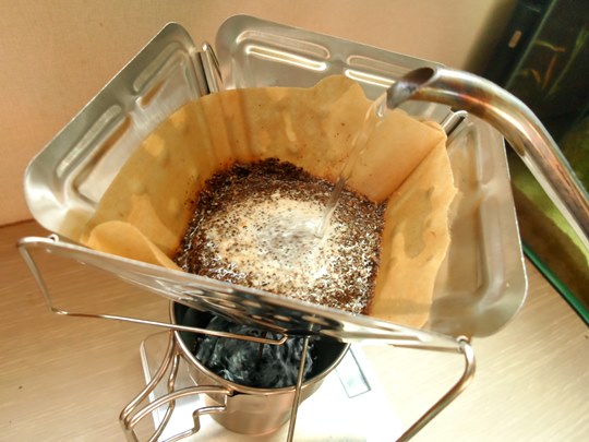 뜨거운 물을 부어 뜸들이기를 진행하고,
