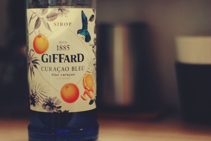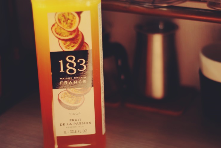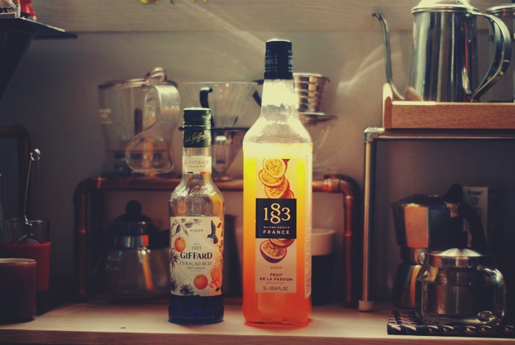 If you look at the picture below, you can see the GIFFARD CURACAO BLEU Syrup and the 1883 PASSION FRUIT Syrup.