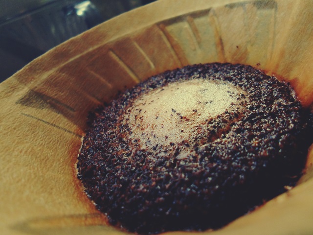 뜨거운 물이 원두에 닿고, 뜸들이기를 합니다.