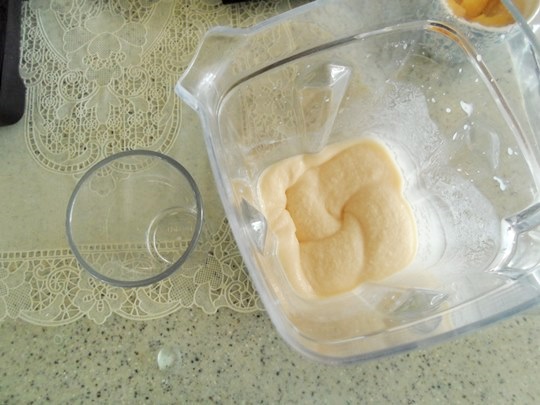 먼저 블렌더 볼에 망고베이스 80g을 계량해줍니다.