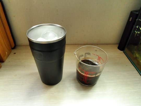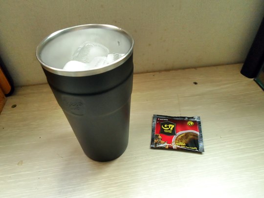 텀블러에 얼음을 가득 채워 준비하였습니다.