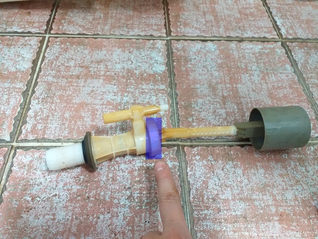 이렇게 통과한 이물질은 결국 필밸브 중간에 걸리게 되어서 물이 멈추지 않고