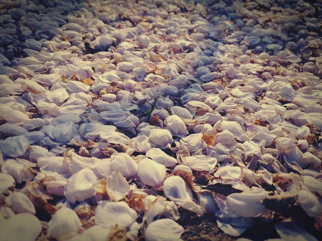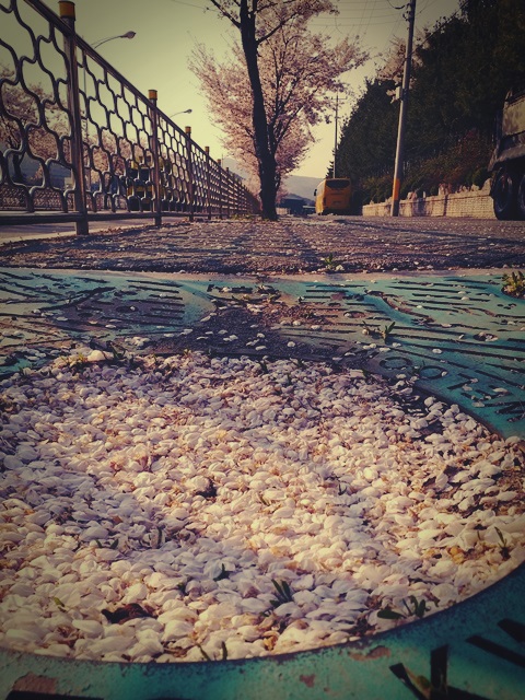 떨어지는 벚꽃도 너무 예쁘고, 바람에 날려 한곳에 모여진