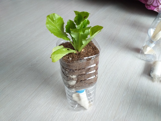 그렇게 구입해온 모든 상추를 페트병에 옮겨담았습니다.
