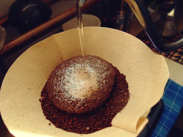 뜨거운 물이 원두에 닿자 엄청나게 부풀어 오르기 시작합니다.