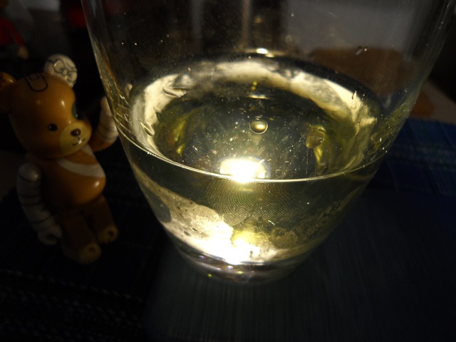 와인잔이 없다보니 깊은 유리잔에 와인을 담아보았는데