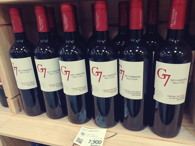G7 와인은 빨간색의 까베르네 쇼비뇽 레드와인과