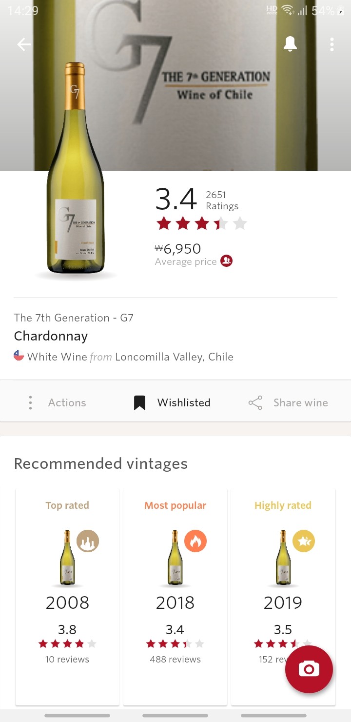 와인앱 <Vivino>를 통해 정보를 알아보는데