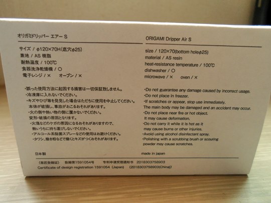 진품 드리퍼의 옆면에는 'ORIGAMI JAPAN'이라는