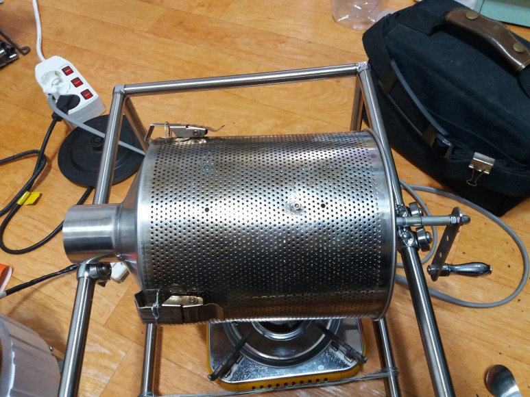 업그레이드된 통돌이 로스터기도 약간의 수작업으로 생두 로스팅 과정을 확인할 수 있습니다.