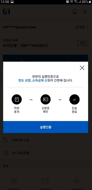 '실명인증'을 눌러 다음으로 넘어갑니다.
