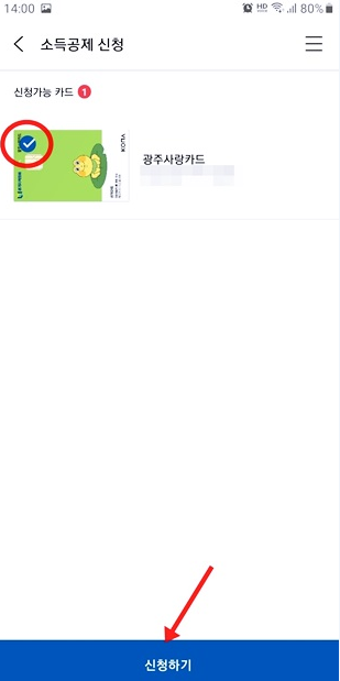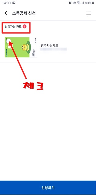 아래 사진처럼 카드 그림에 체크를 하고, 신청하기를 클릭합니다.