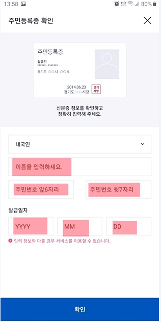 실명인증은 주민등록증과 운전면허증 중에 택1 합니다.