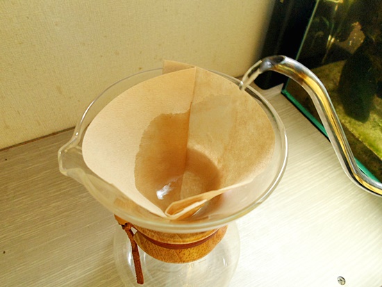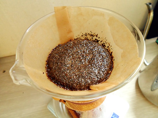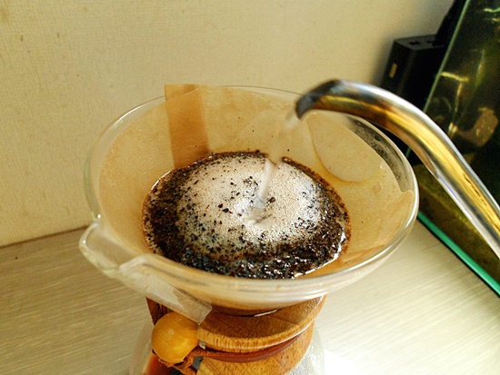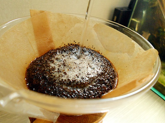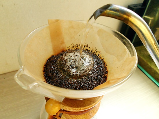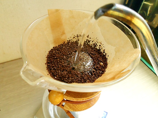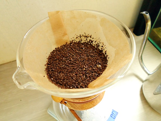 원두를 드립크기로 분쇄하여 종이필터에 부어줍니다.