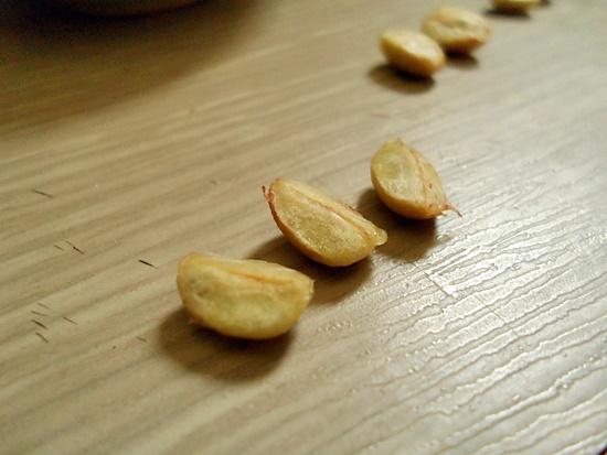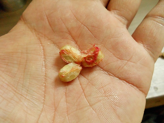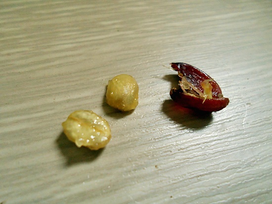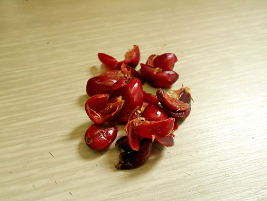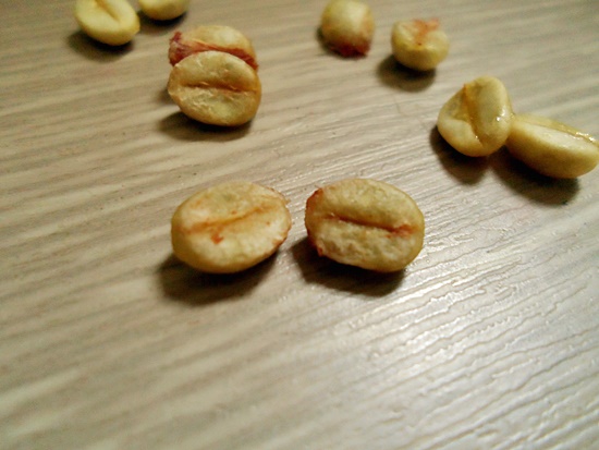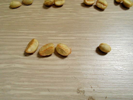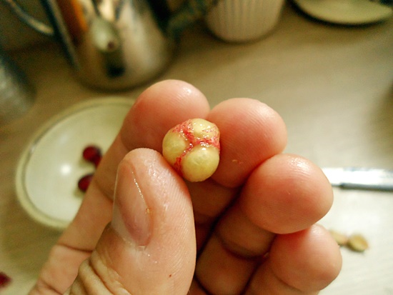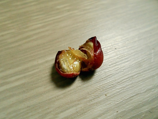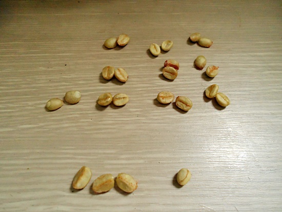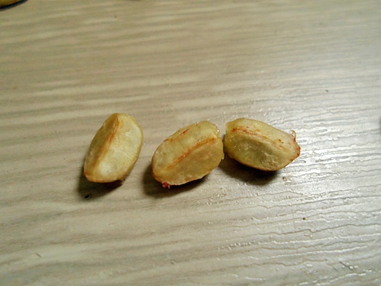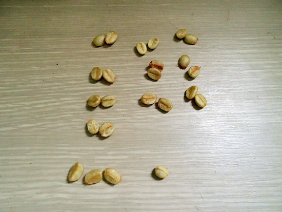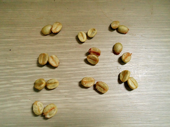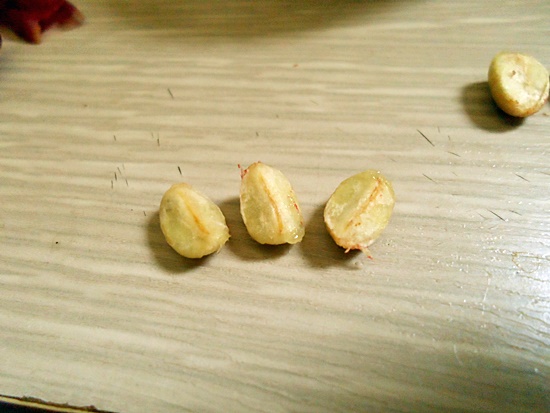 그 안에 든 커피나무 씨앗을 꺼내어 봅니다.