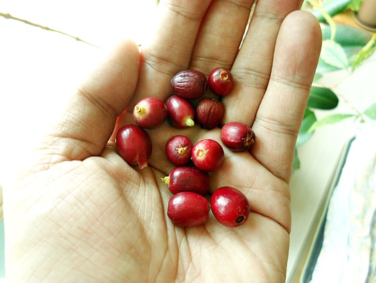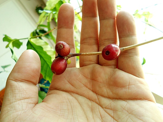 10개의 체리에서는 1쌍의 커피나무 씨앗이 나왔고,