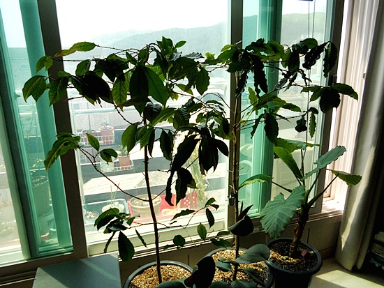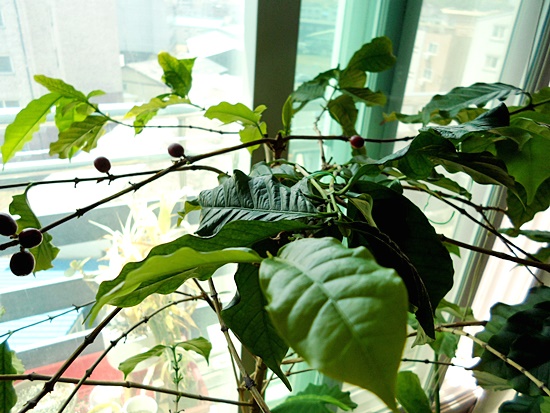 왼쪽의 커피나무는 그 동안 꽃과 열매를 맺어주었고,