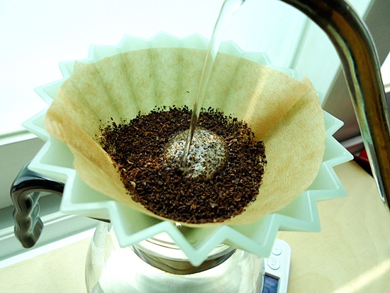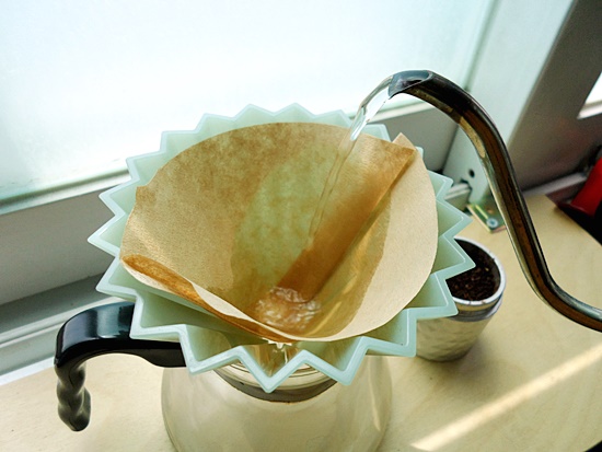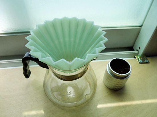 오리가미 드리퍼를 커피 서버 위에 올려놓고,