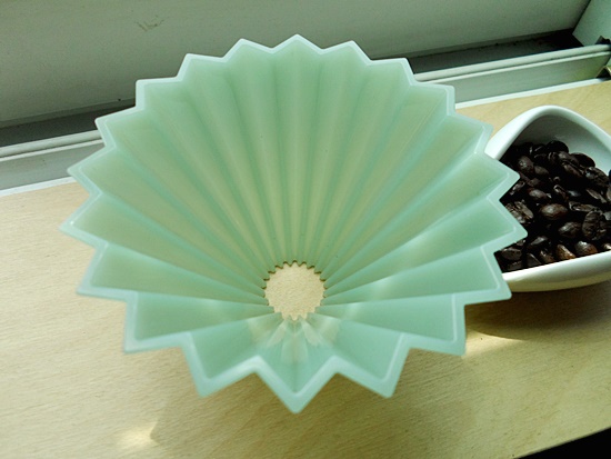 매트그린 색상의 오리가미 드리퍼를 꺼내어 보았습니다.