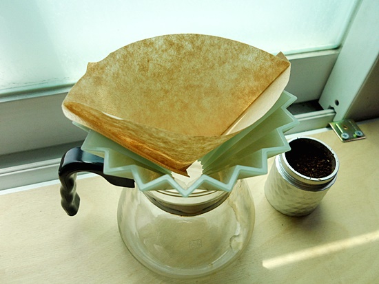 종이필터를 접어 넣고,