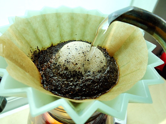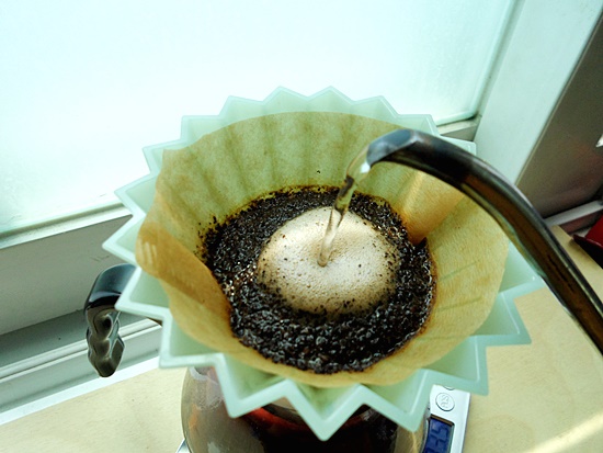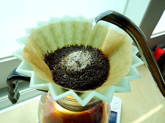 원두가루 전체가 적셔질 정도로만