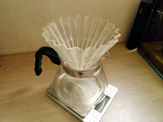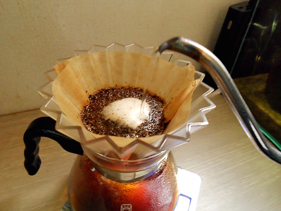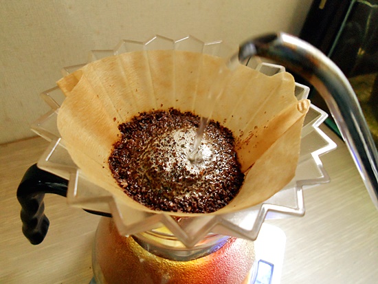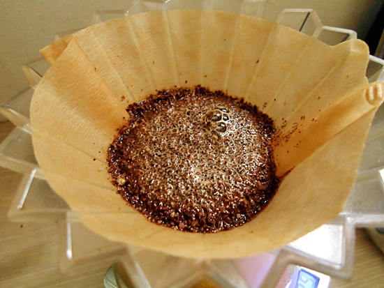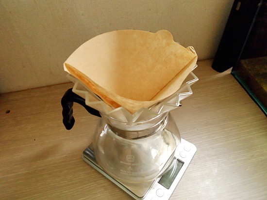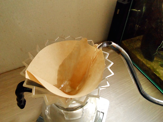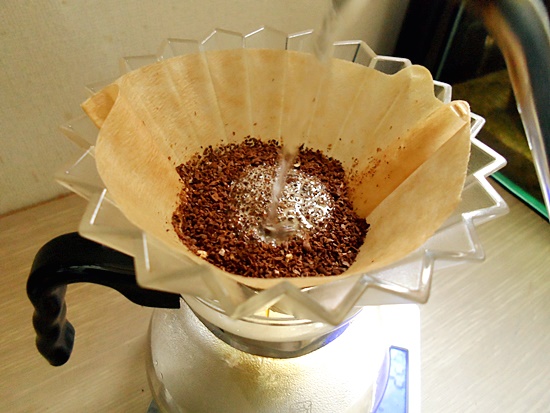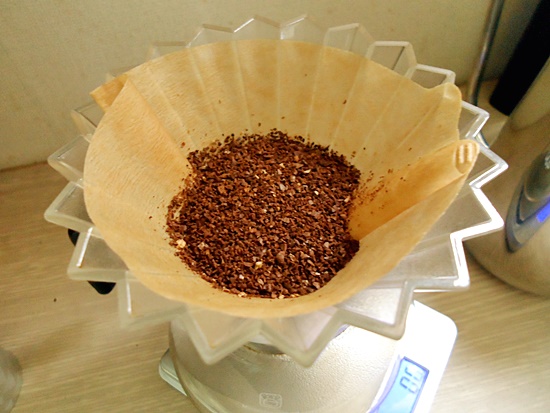 원두를 드립크기로 분쇄하여 종이필터에 붓습니다.