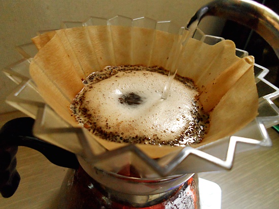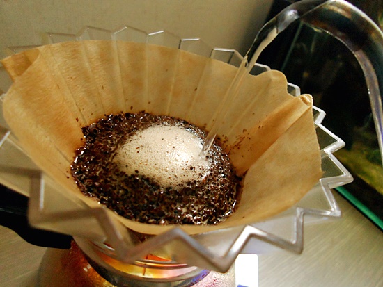 원두가루 전체가 적셔질 정도로만 뜨거운 물을 부어