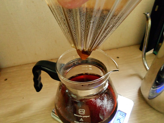 커피 추출이 완료되면 드리퍼를 걷어내고,