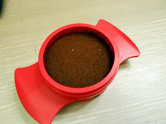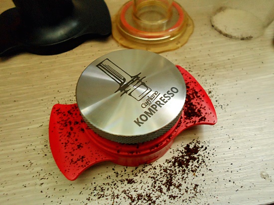 원두를 곱게 분쇄하여 바스켓에 넣어 탬핑을 합니다.
