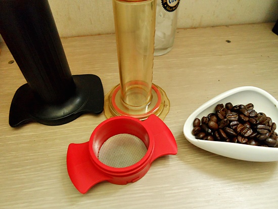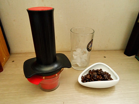 플런저를 눌러 에스프레소를 추출하면