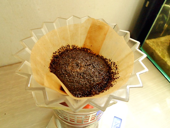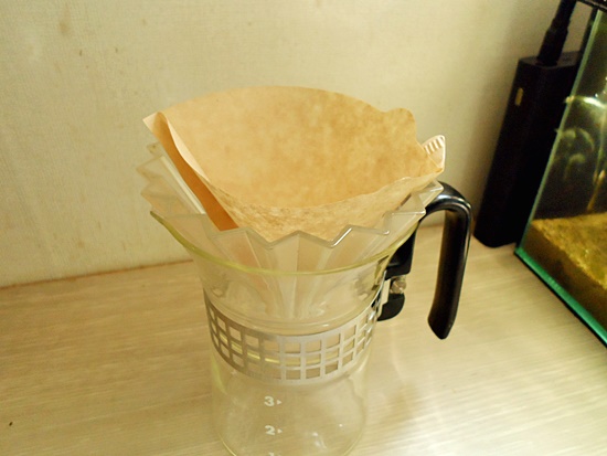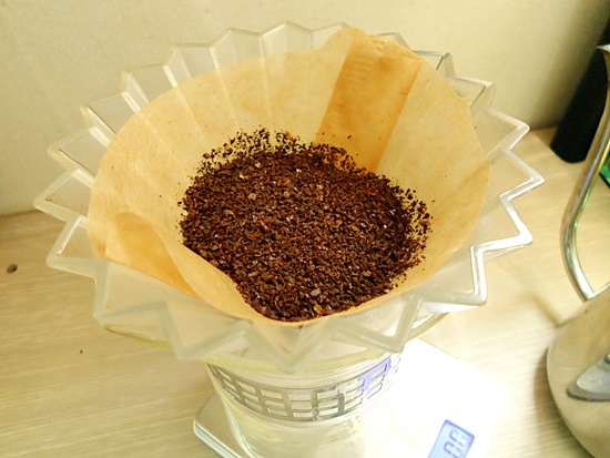 원두를 분쇄하여 종이필터에 부어줍니다.