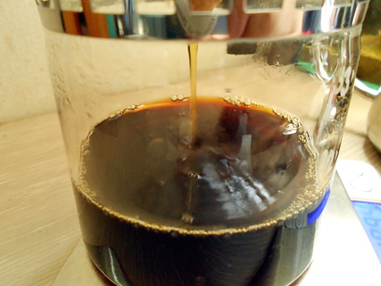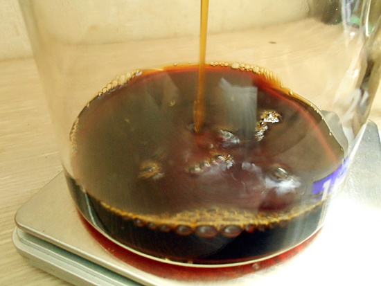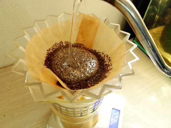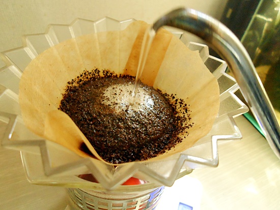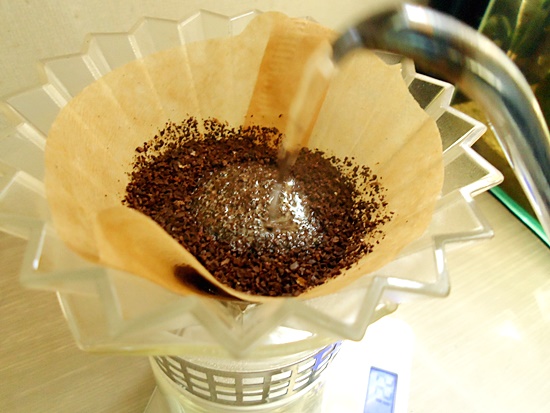 본격적으로 물을 부어 커피추출을 시작합니다.