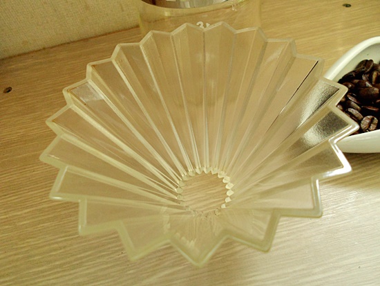 커피 서버 위에 오리가미 드리퍼를 올려놓고,