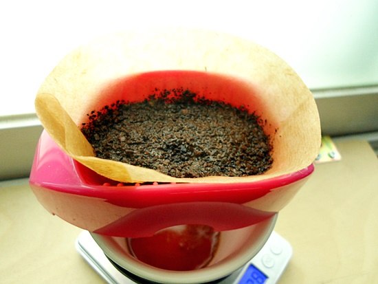 원두를 드립크기로 분쇄하여 종이필터에 부어줍니다.