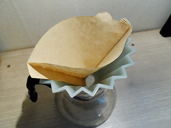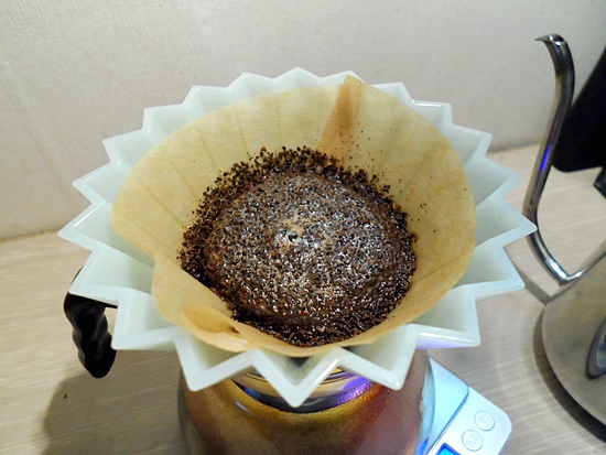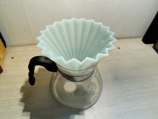 커피 서버 위에 오리가미 드리퍼를 올려놓고,