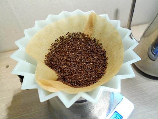 원두를 드립크기로 분쇄하여 종이필터에 붓습니다.