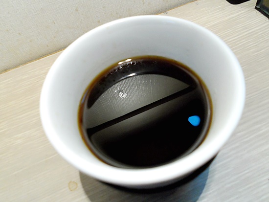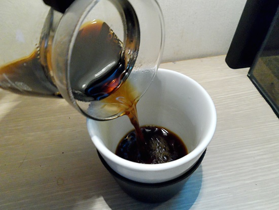 머그잔으로 추출된 커피를 옮겨담습니다.