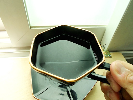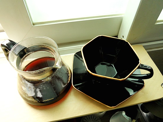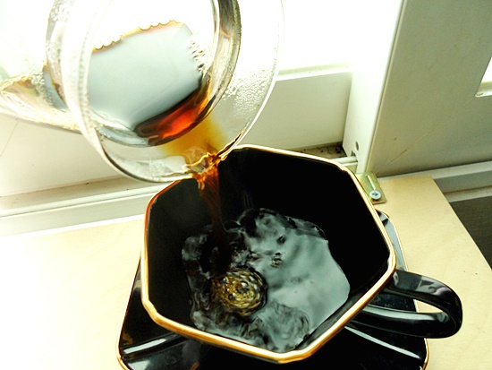 커피를 옮겨담을 잔을 준비하고, 커피를 옮겨담습니다.