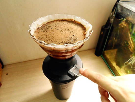 텀블러로부터 드리퍼를 걷어 냅니다.
