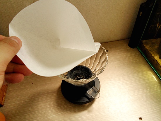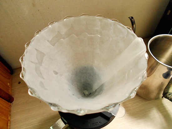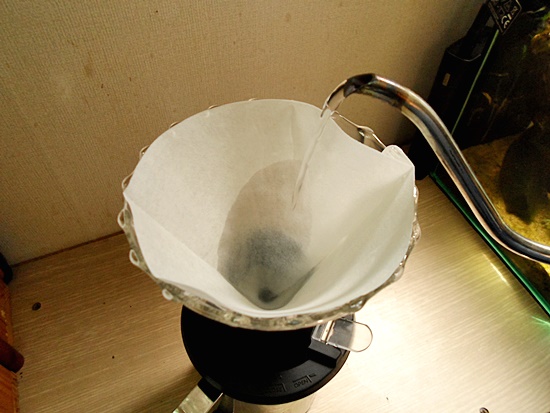 이제 뜨거운 물을 드리퍼에 가득 채워넣고,