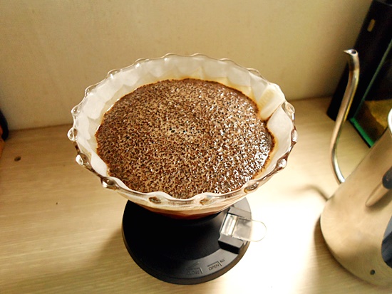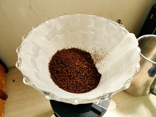 린싱을 마친 후, 원두를 드립크기로 분쇄하여