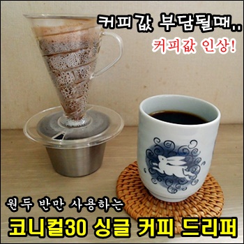인상되는 커피값이 부담될때 원두 반만 사용하는 코니컬30 싱글 커피 드리퍼 커피