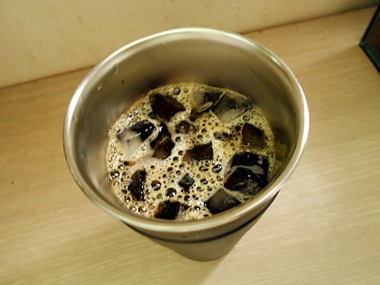 텀블러에 가득찬 아이스 드립커피가 완성되었습니다.